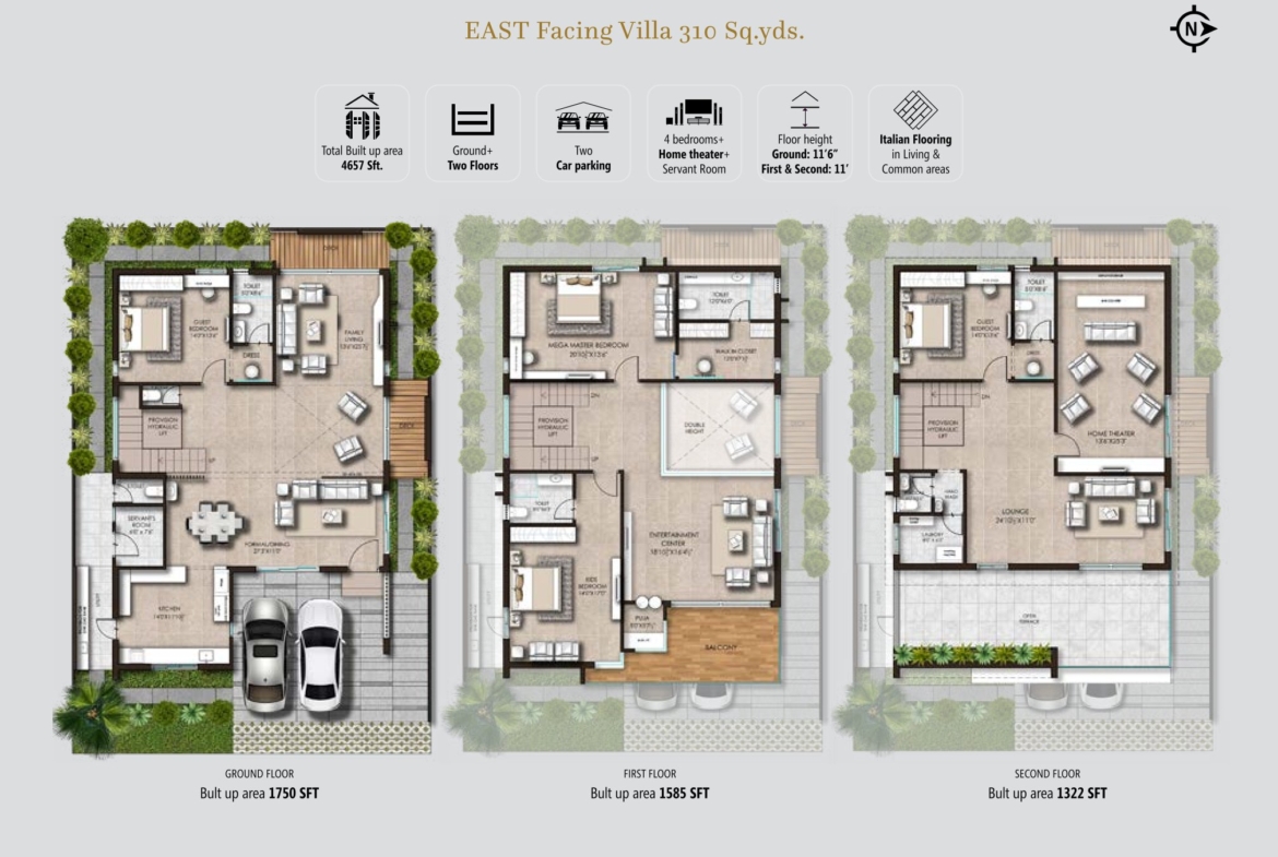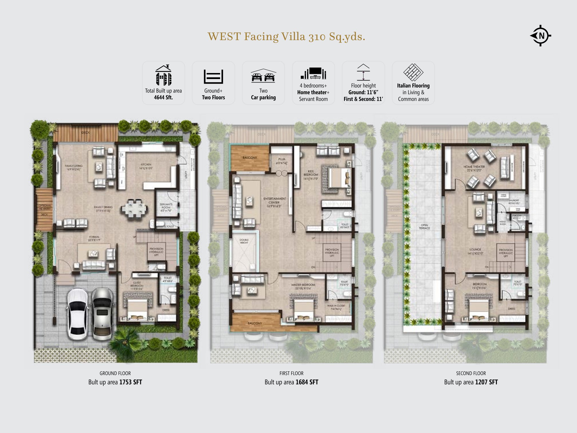 Units : 4 BHK + HOME THEATER + SERVENT ROOM ( VILLA )