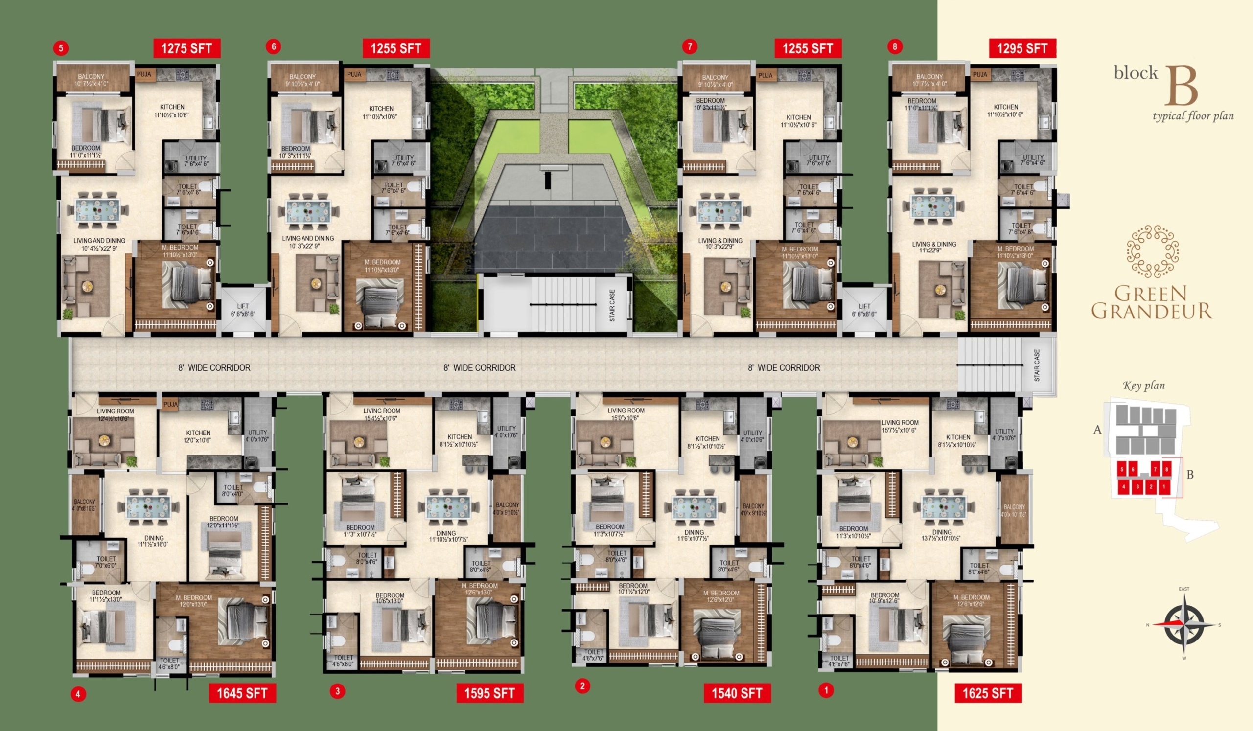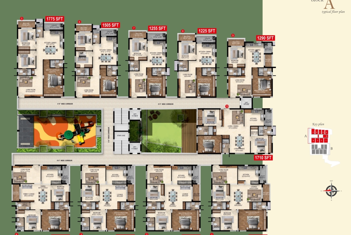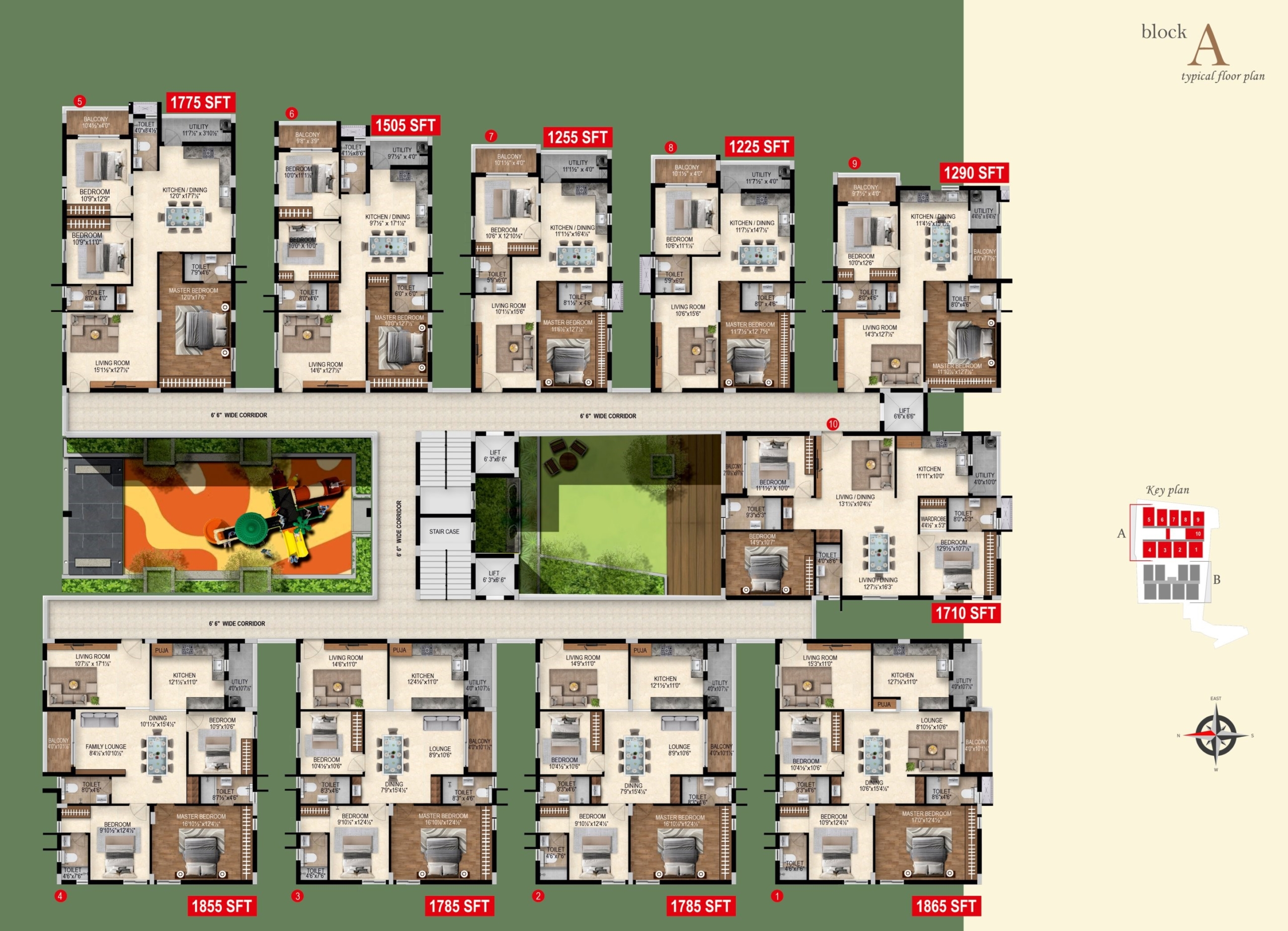 Unit Sizes 1225 — 1865sft(Only East & West).