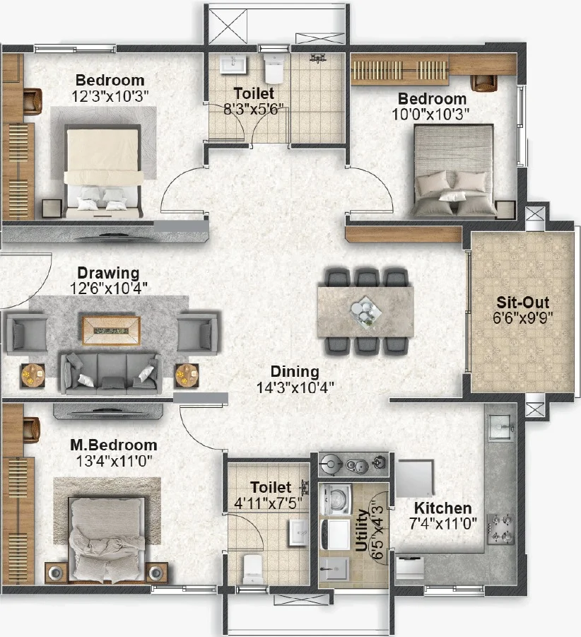 • Property Size: 1184 , 1383 & 1541 Square Feet