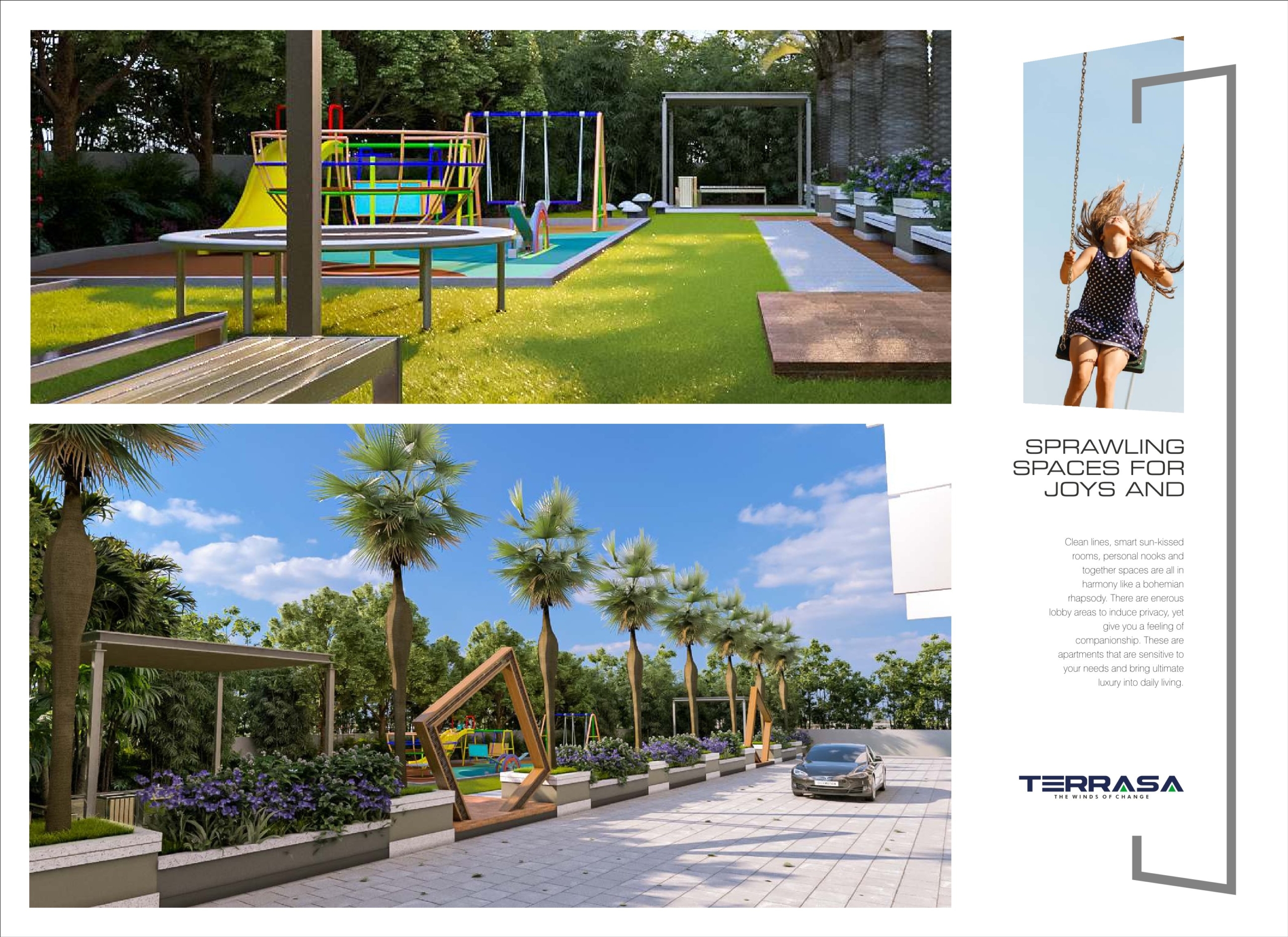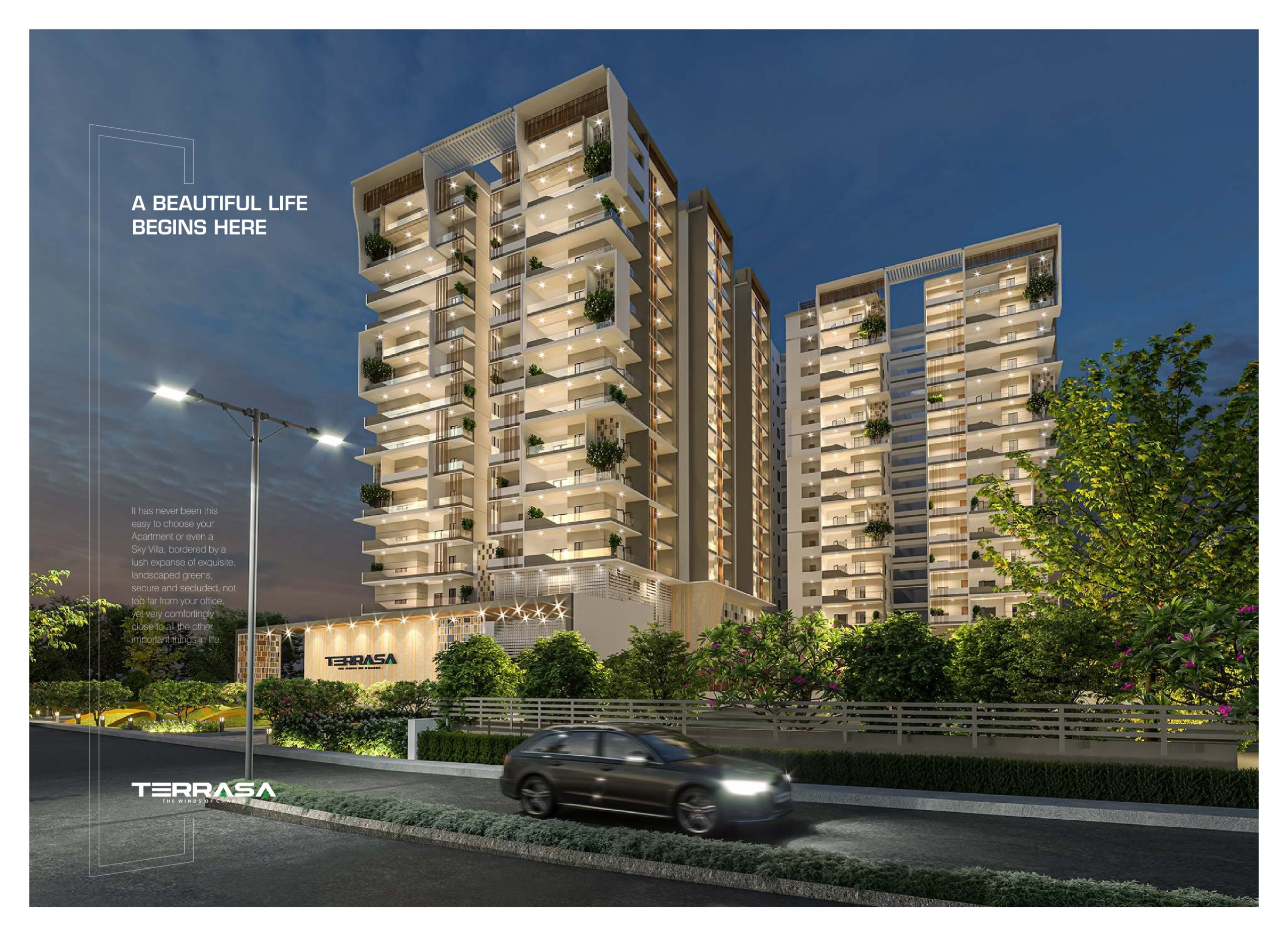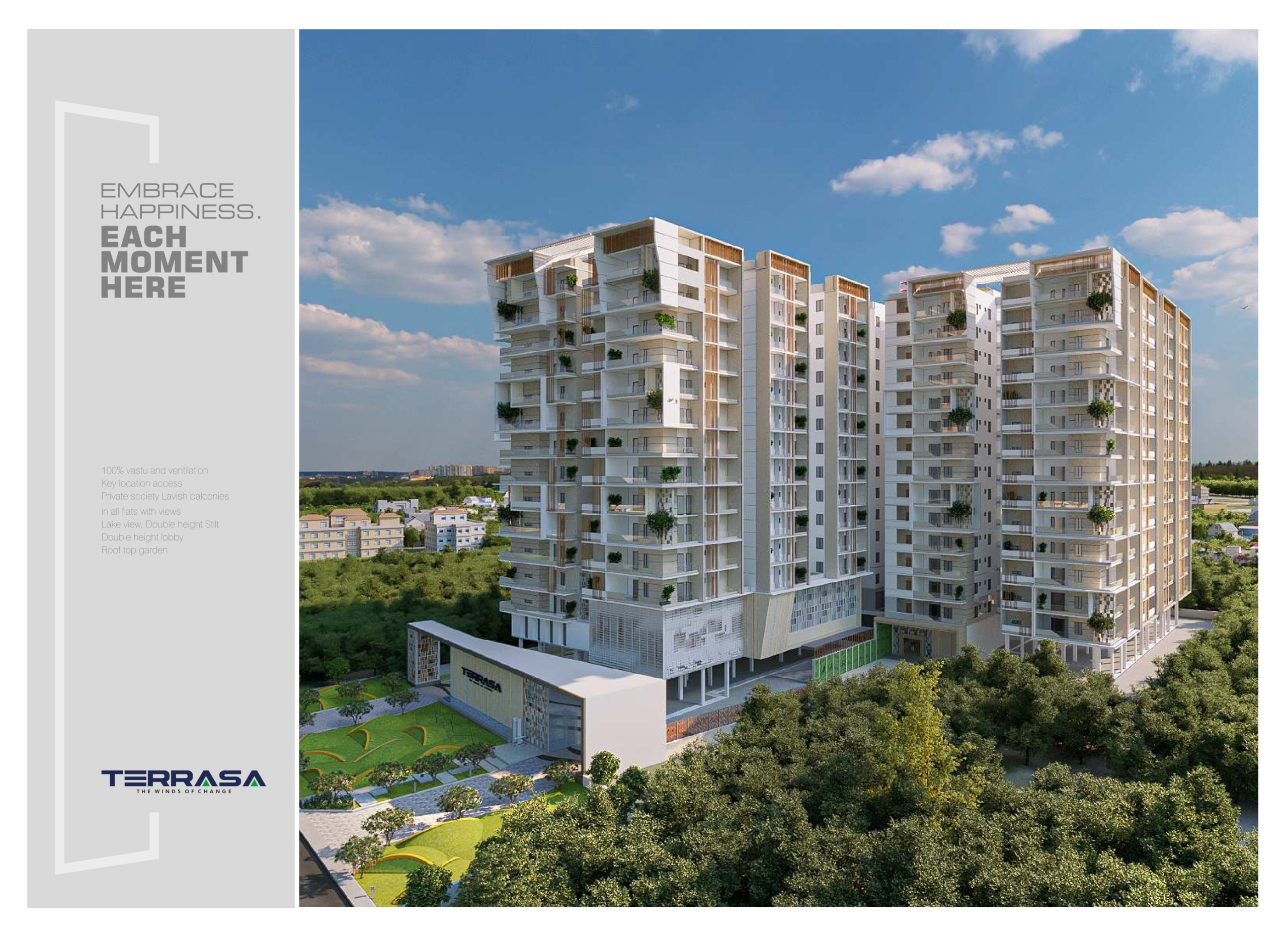 Terrasa is a unique gated community that redefines spacious luxury living. The smartly crafted 2 and 3 BHK high-rise apartments, balconies with an incredible view and proximity to the world make this a great space for you and your loved ones to thrive.
