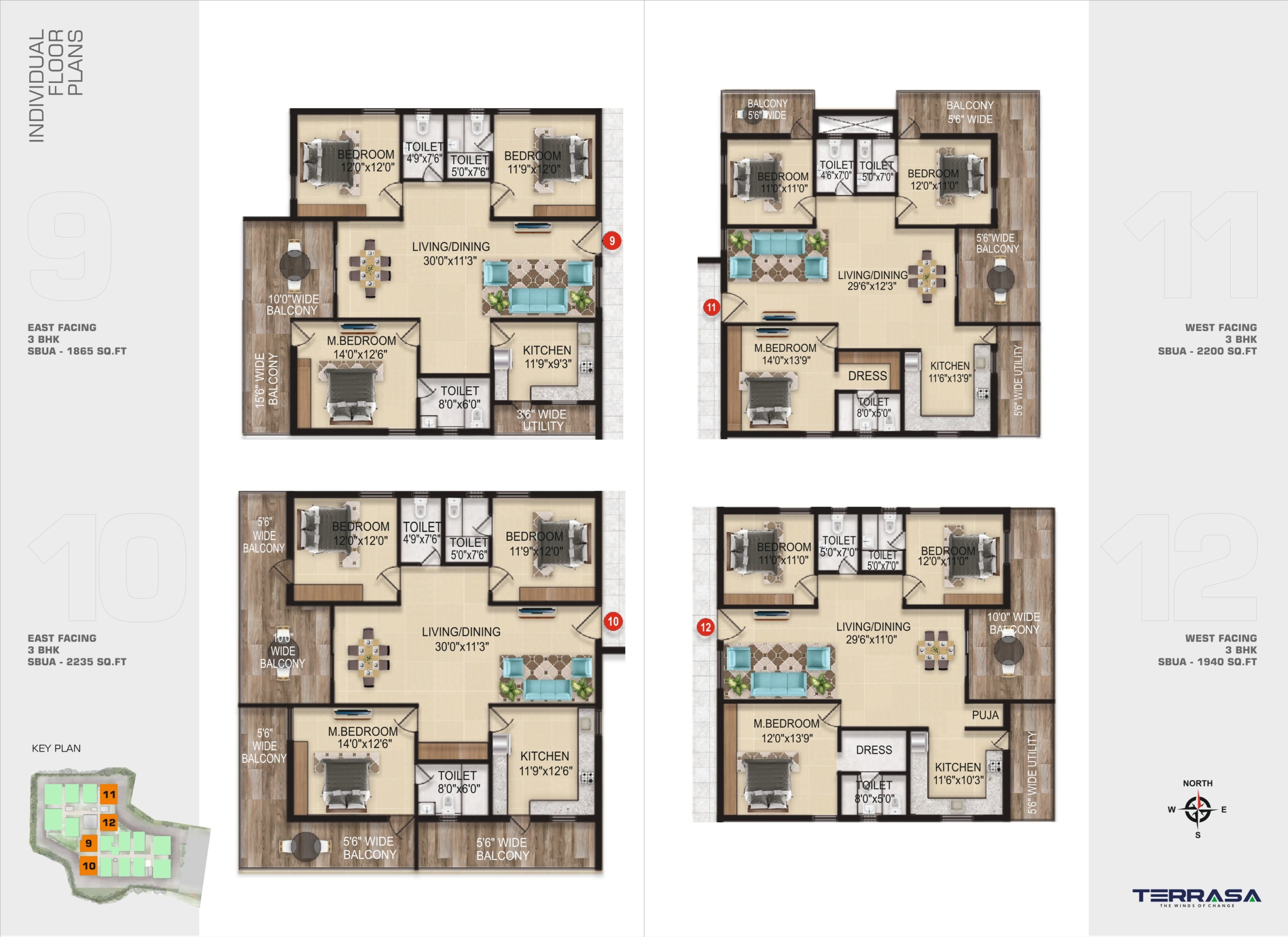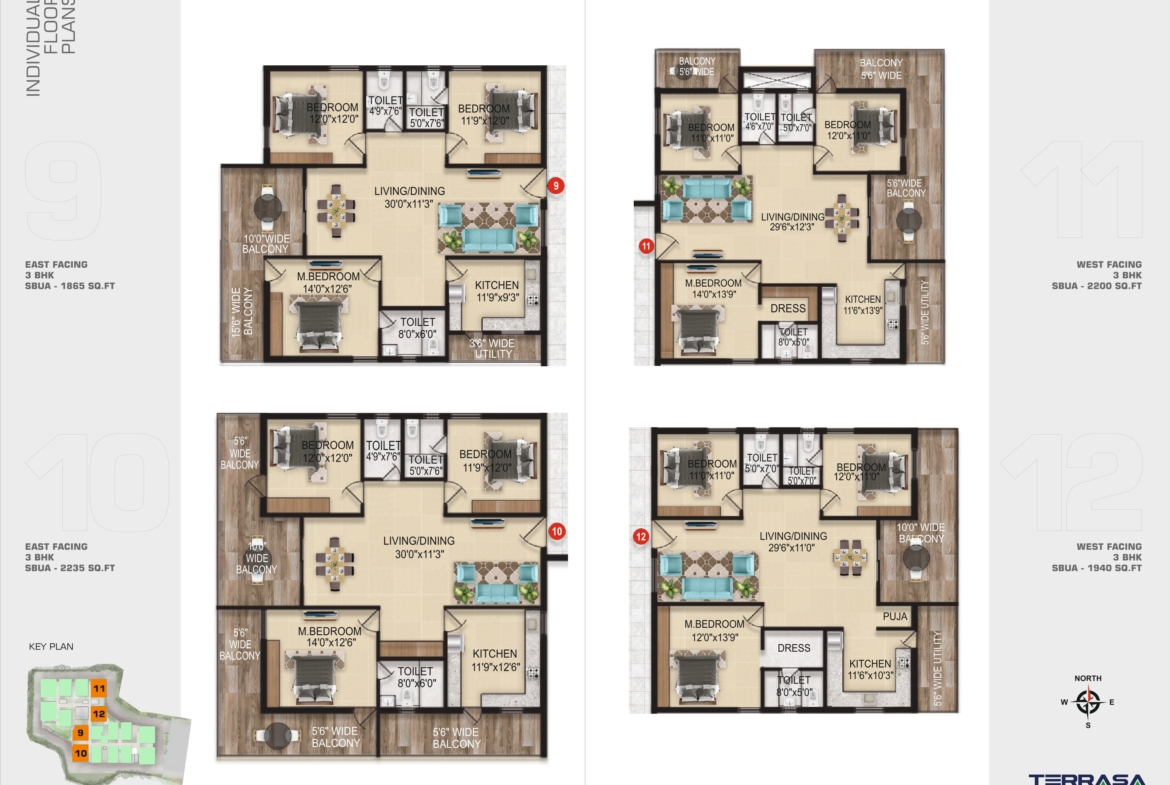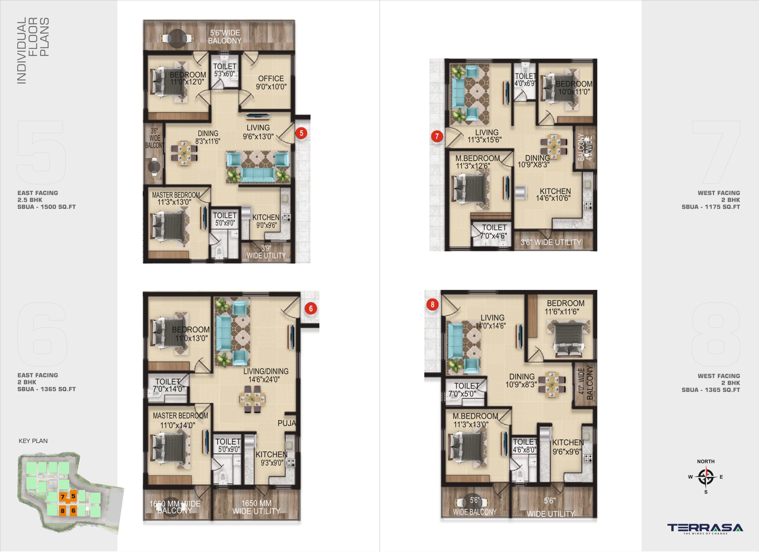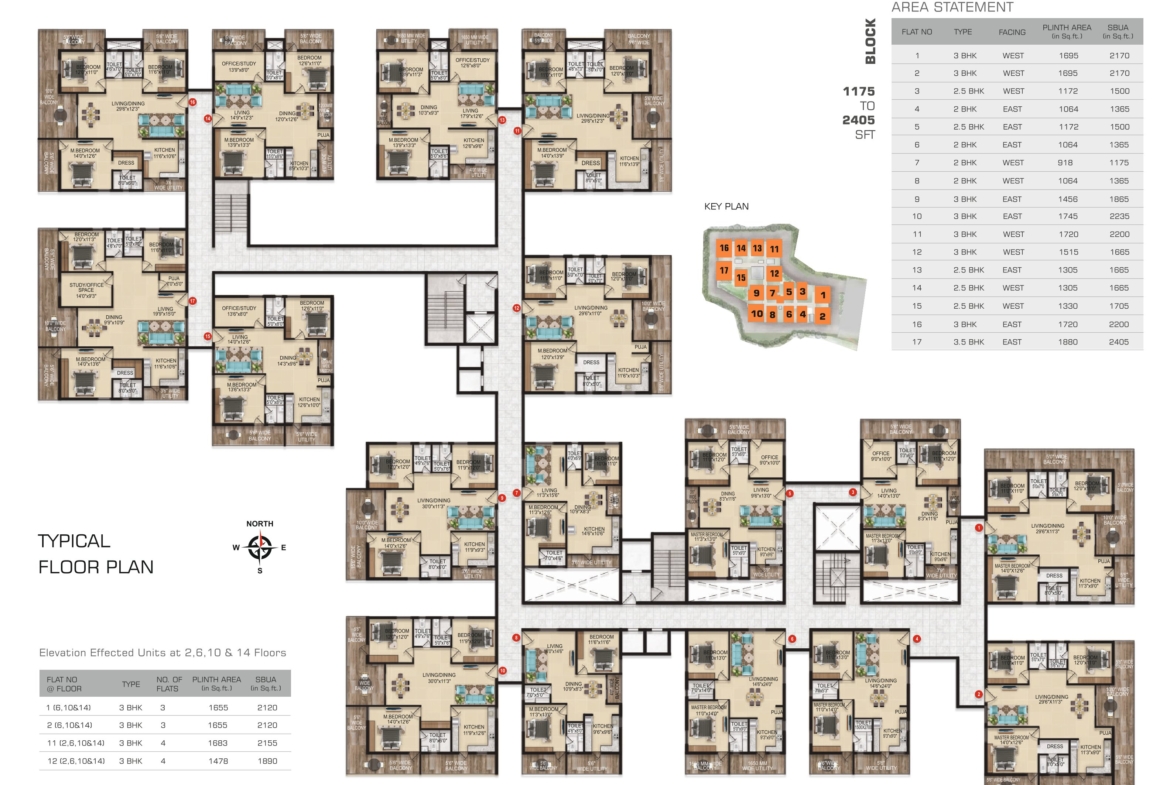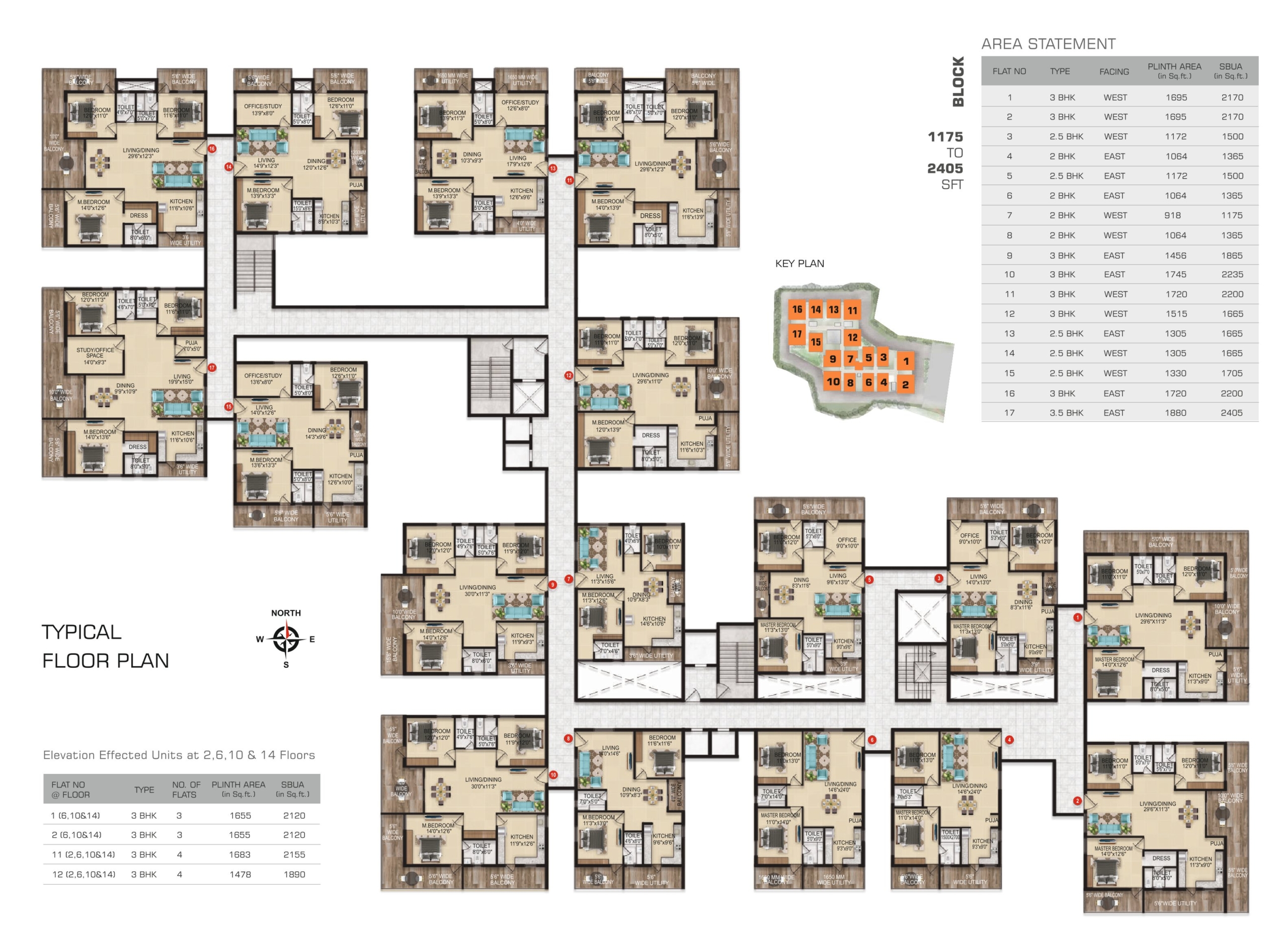 • Property Size: 1175 to 2405 Square Feet