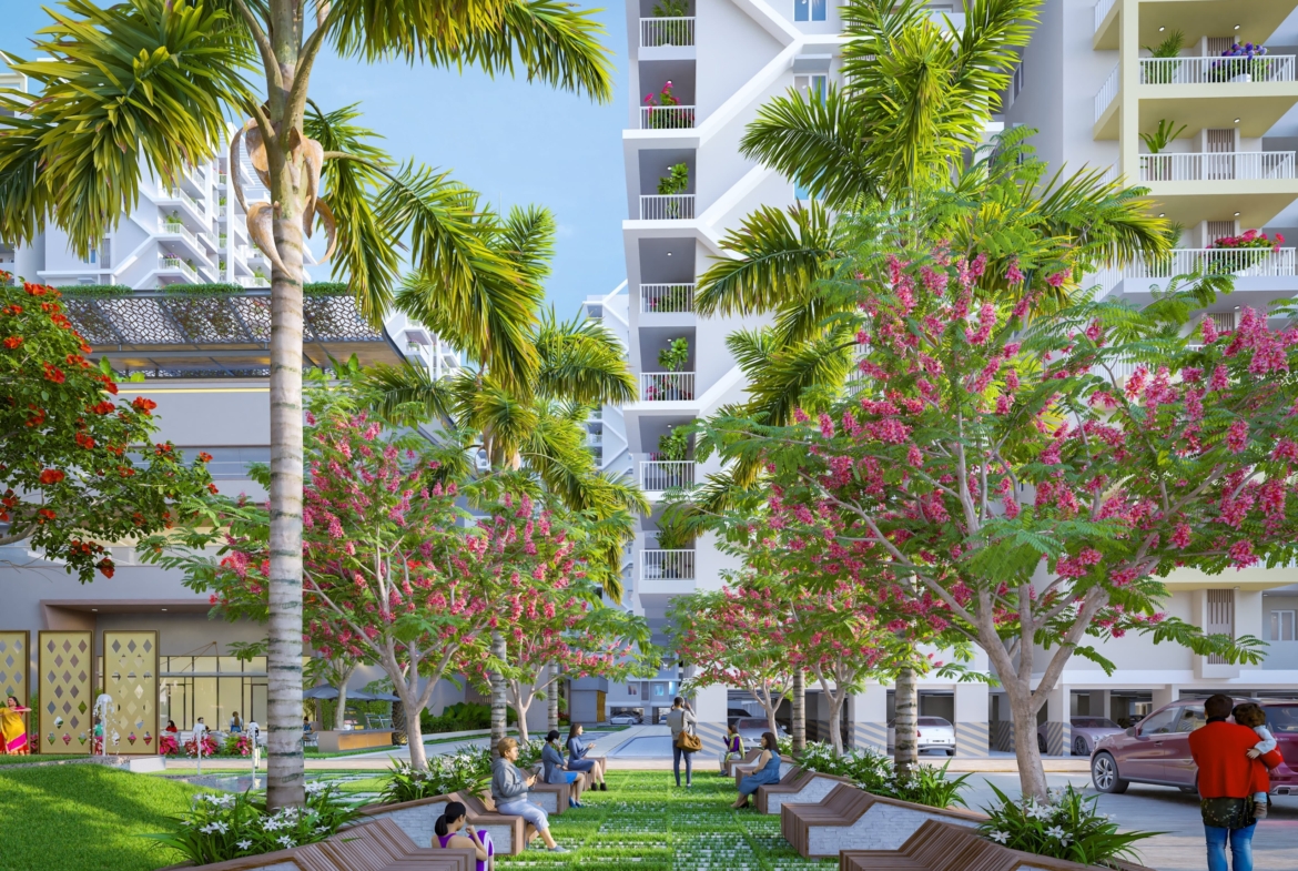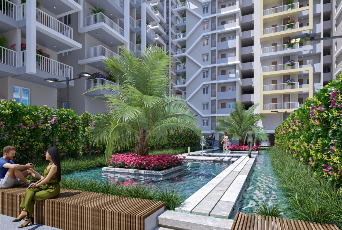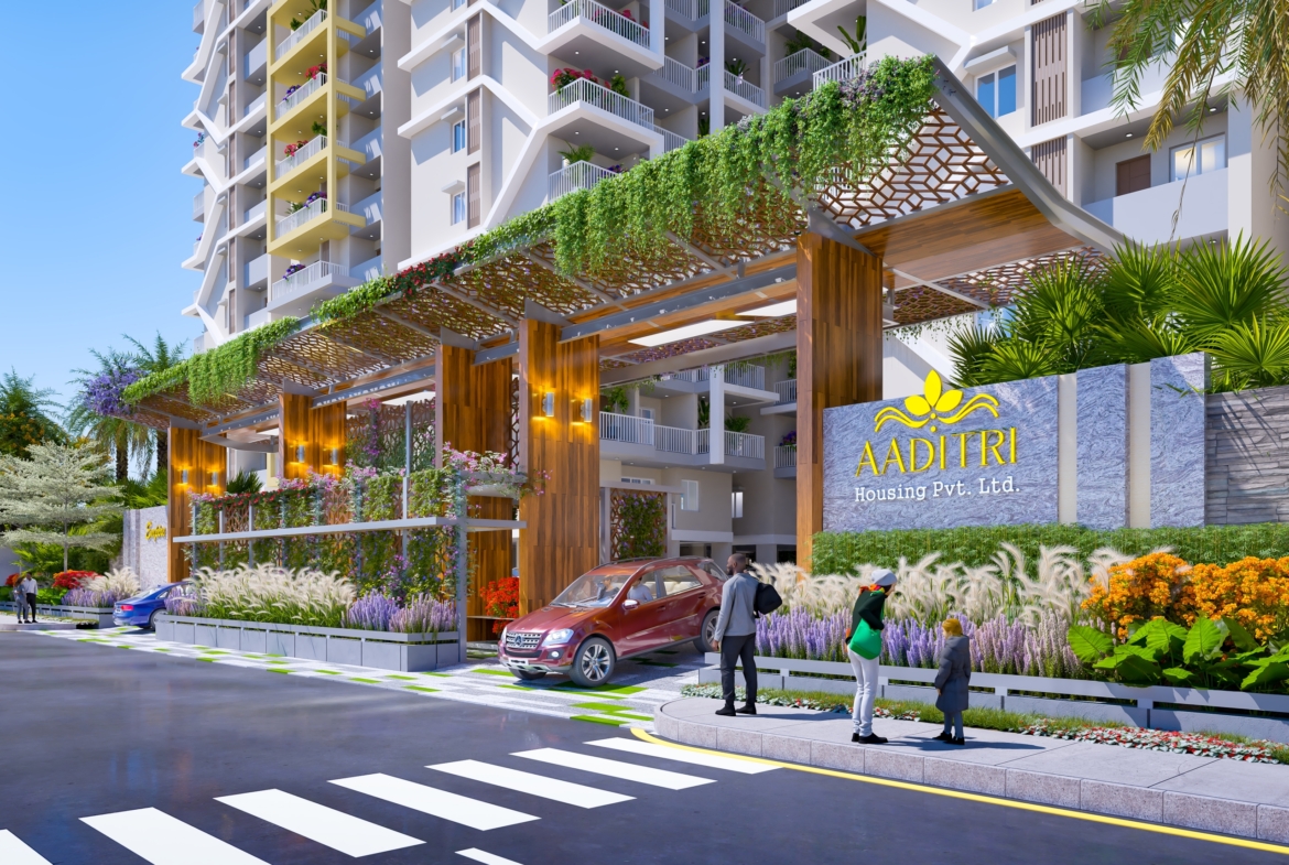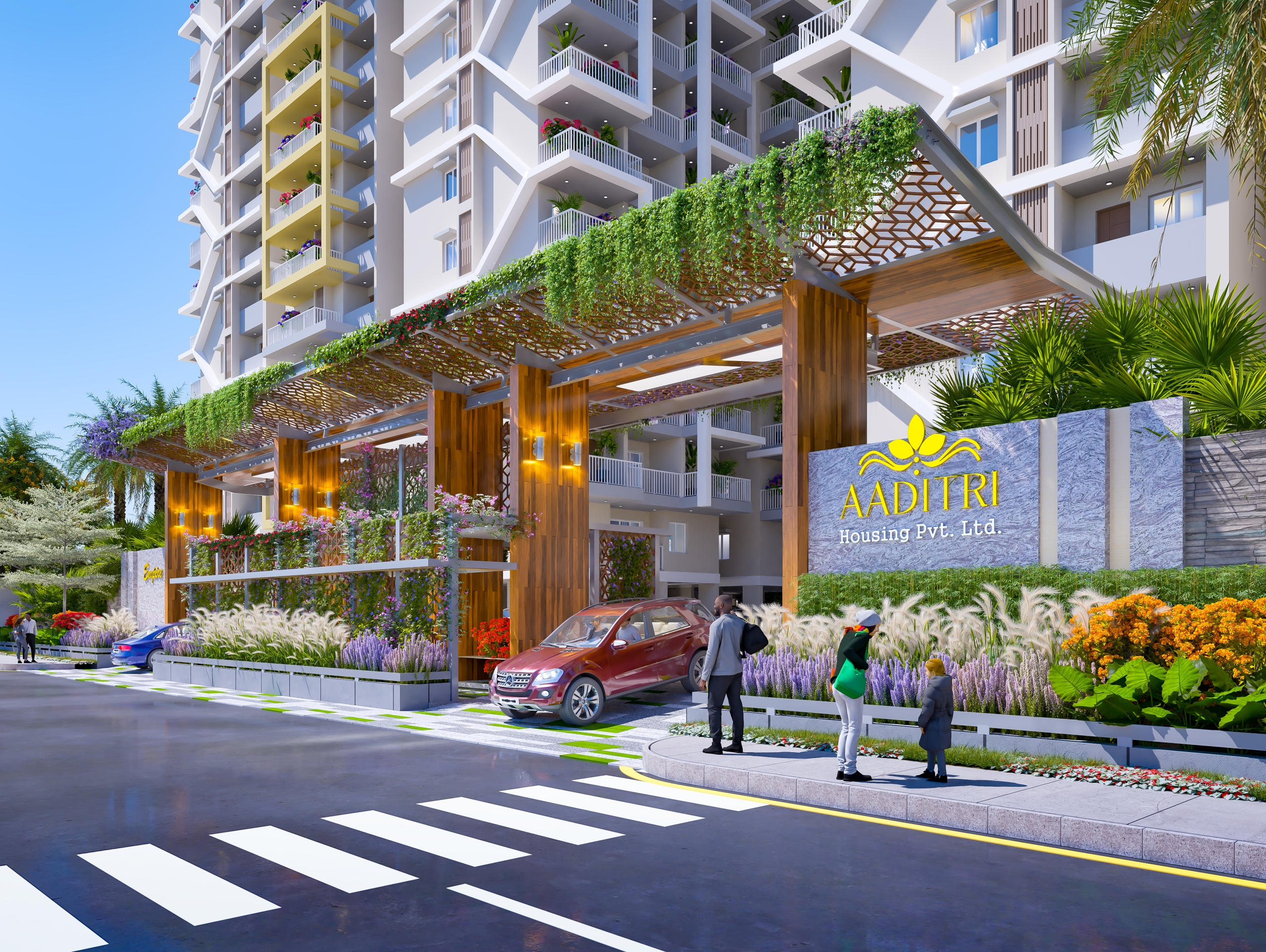 AADITRI’s EMPIRE – A TRUE GATED COMMUNITY, a mix of both 2 & 3 BHK Luxury apartment complexes are strategically located in the lush green growth clusters nearby to the growth corridor positioned on both sides of the Hyderabad – Kollur Gate (ORR – Exit: 2) in Velimala Village in a very Serene and Tranquil surrounding with vibrant views for relaxed, Comfort and Cozy living in style