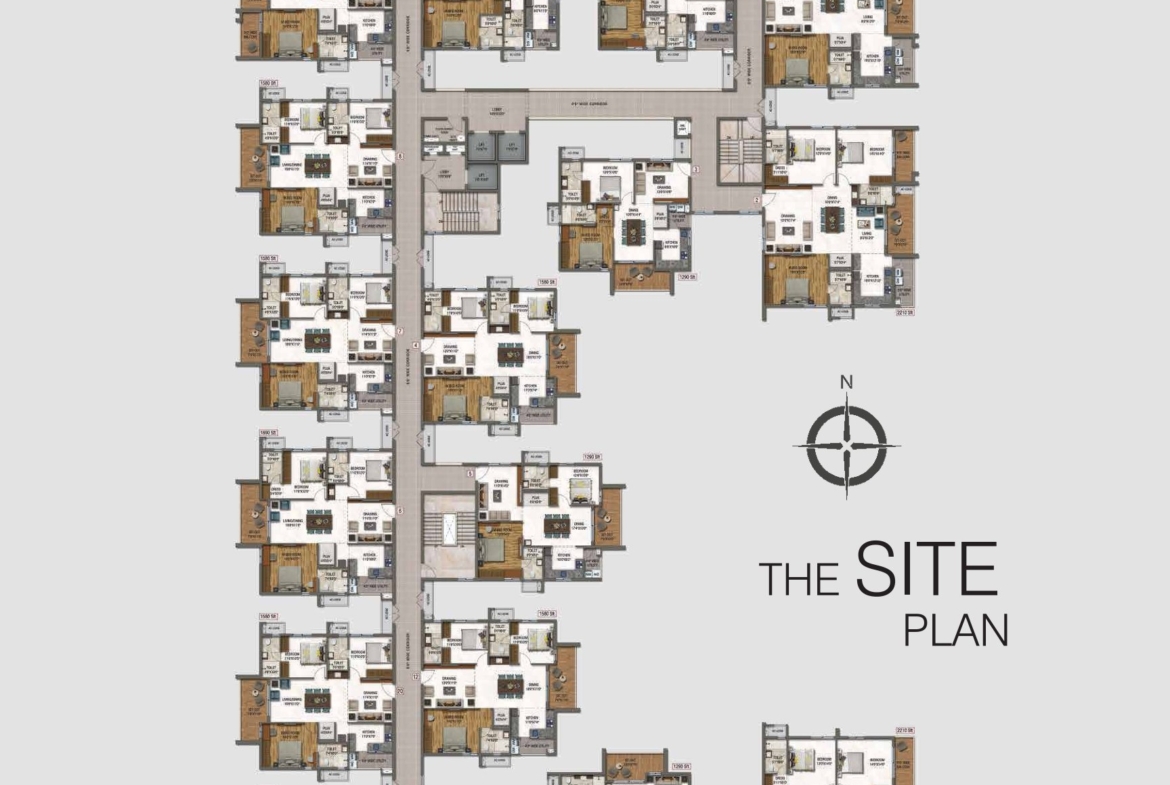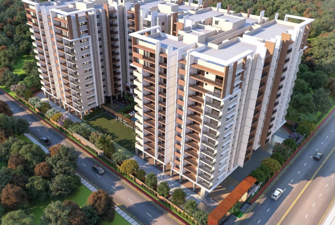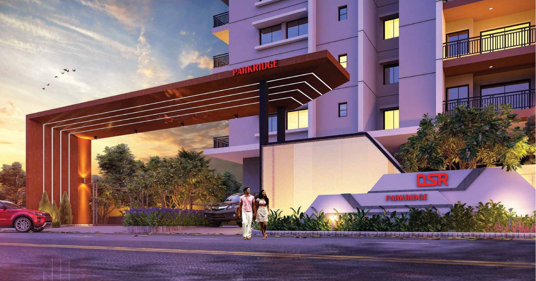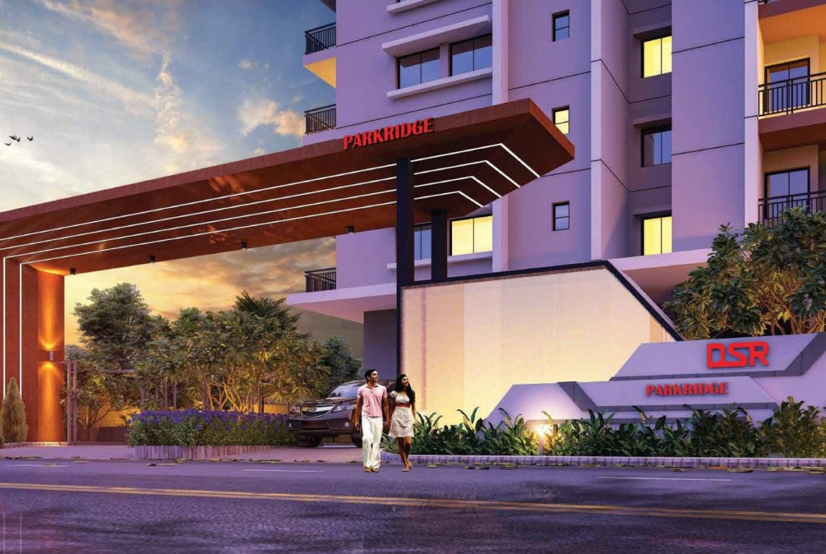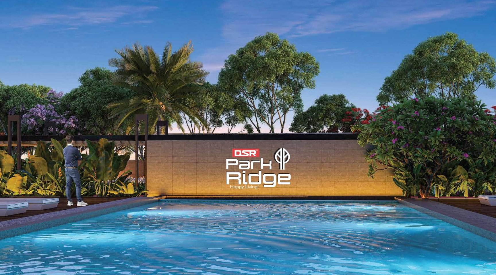 DSR Park Ridge is an exquisitely designed 2 and 3-BHK apartment project located in one of Hyderabad’s most sought-after and connected zones, Nallagandla. DSR Park Ridge is a master-planned community in the city of Hyderabad, India. The project is designed to provide a holistic lifestyle that is healthy, sustainable, and eco- friendly. The homes in the community are thoughtfully designed to harness the bounties of nature, and each is naturally well-lit and airy. Another unique feature is that no home shares common walls, ensuring complete privacy for residents. There is sufficient space between buildings and each home is 100% Vaastu compliant. Lush green homes in a city.
