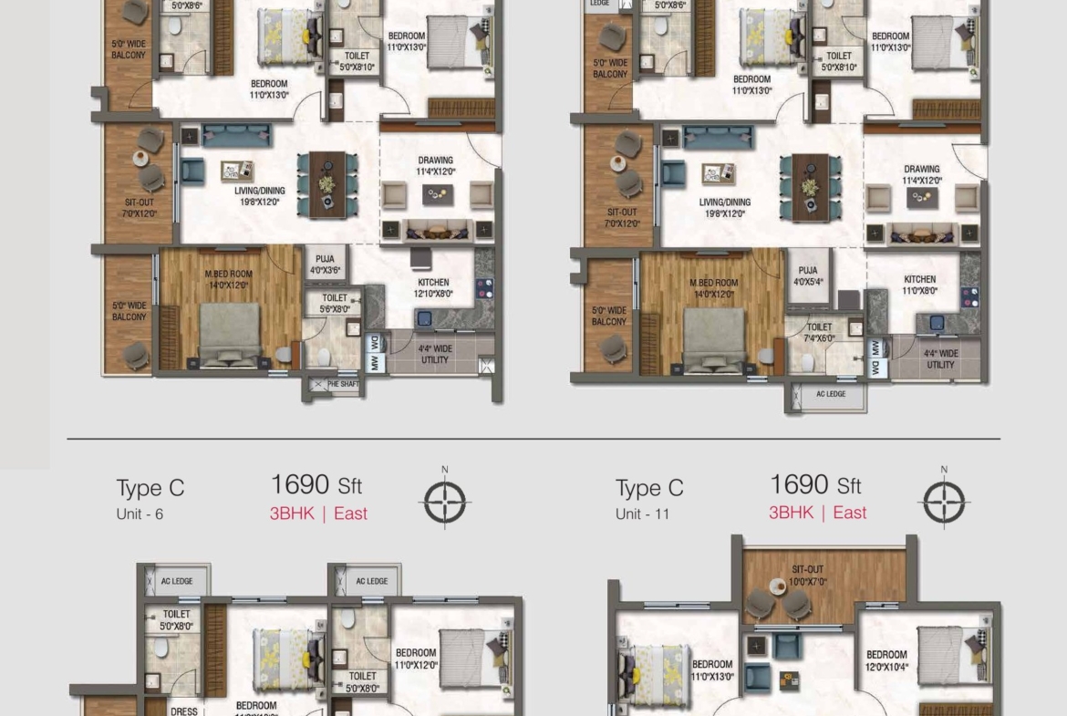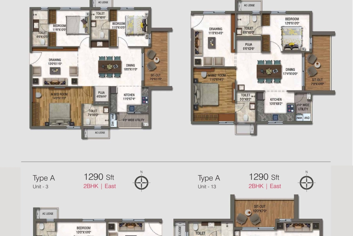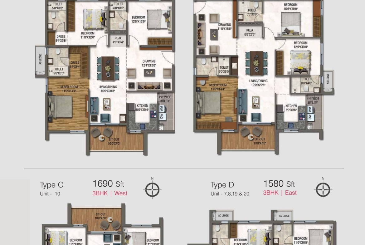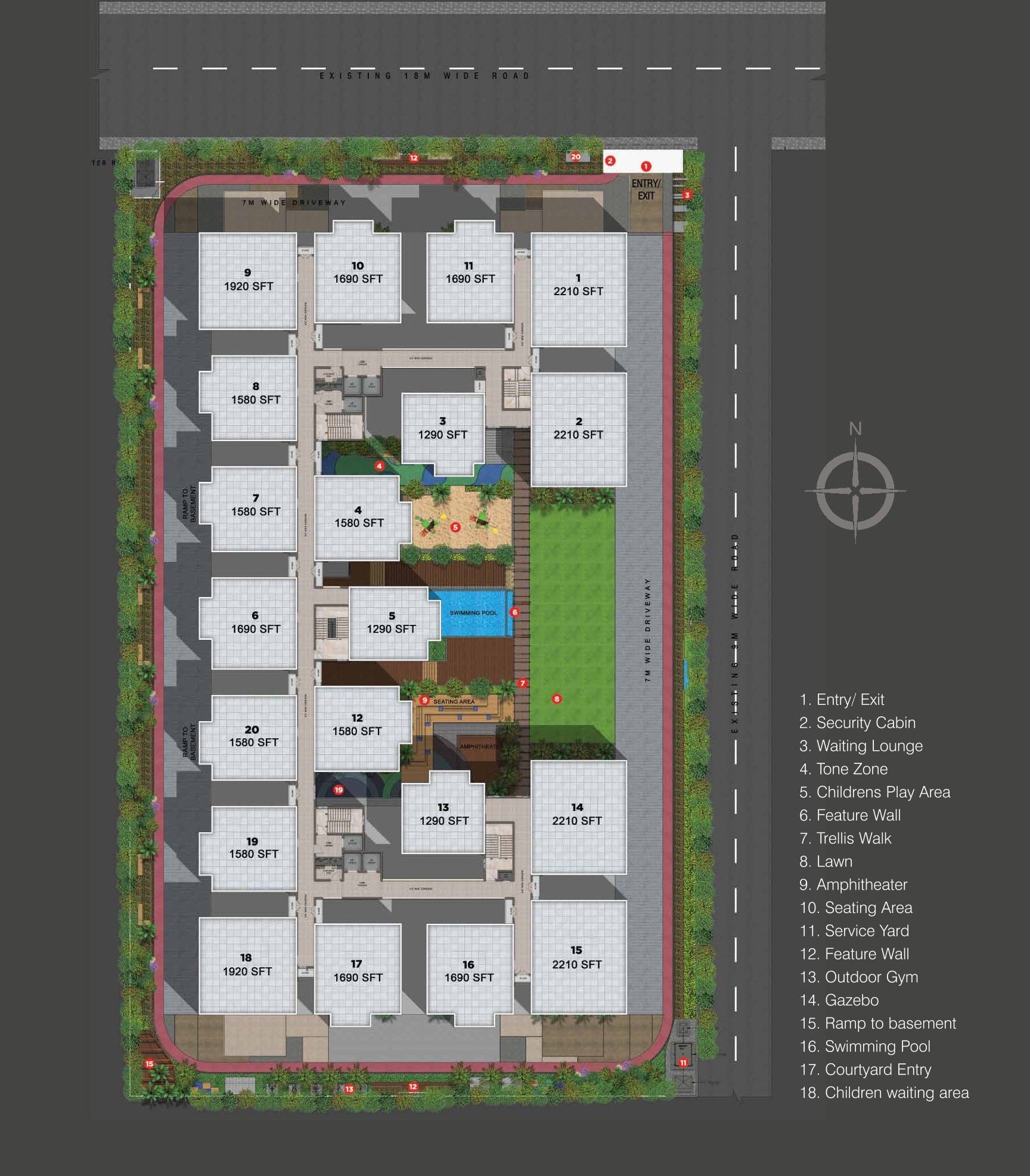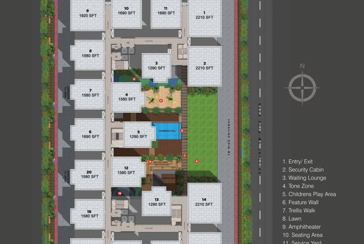 DSR Park Ridge is an exquisitely designed 2 and 3-BHK apartment project located in one of Hyderabad’s most sought-after and connected zones, Nallagandla. DSR Park Ridge is a master-planned community in the city of Hyderabad, India. The project is designed to provide a holistic lifestyle that is healthy, sustainable, and eco- friendly. The homes in the community are thoughtfully designed to harness the bounties of nature, and each is naturally well-lit and airy. Another unique feature is that no home shares common walls, ensuring complete privacy for residents. There is sufficient space between buildings and each home is 100% Vaastu compliant. Lush green homes in a city.