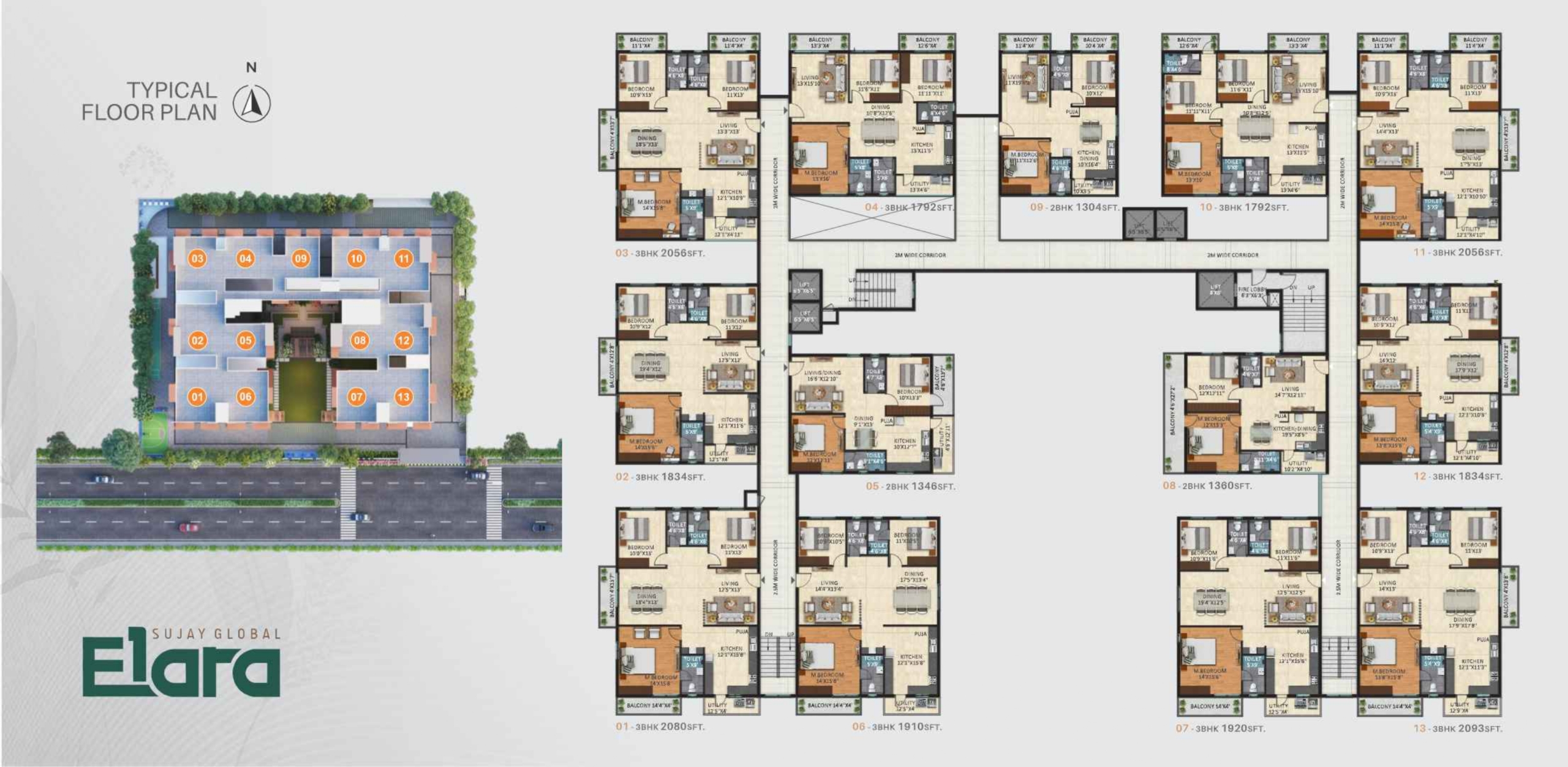 Welcome to Sujay Global Elara, an exclusive 163-unit gated community that redefines urban luxury. Spread across 1.31 acres, this RERA & GHMC-approved project offers spacious 2 & 3 BHK residences ranging from 1304 to 2093 sft. With 60% open spaces, a 10,000 sft clubhouse, and 20,000 sft of terrace amenities, experience a lifestyle that blends comfort, convenience, and elegance.