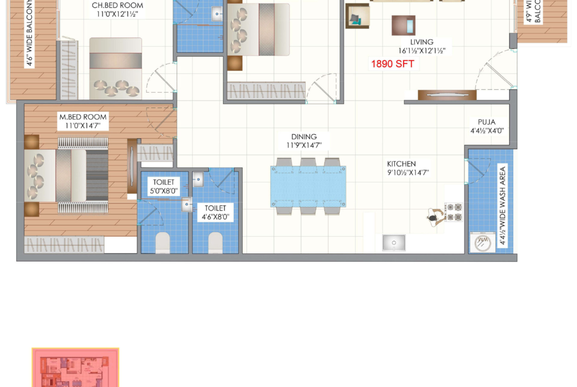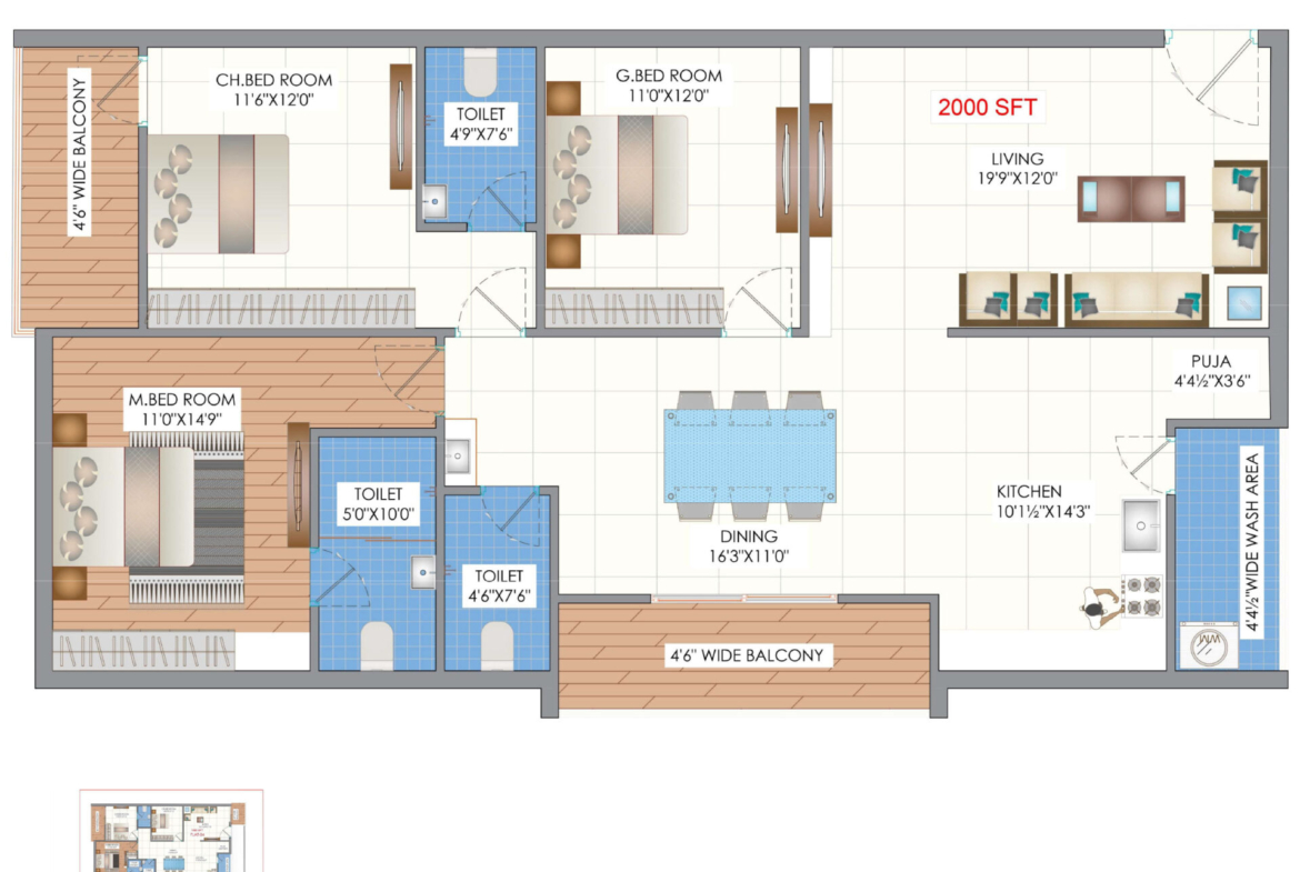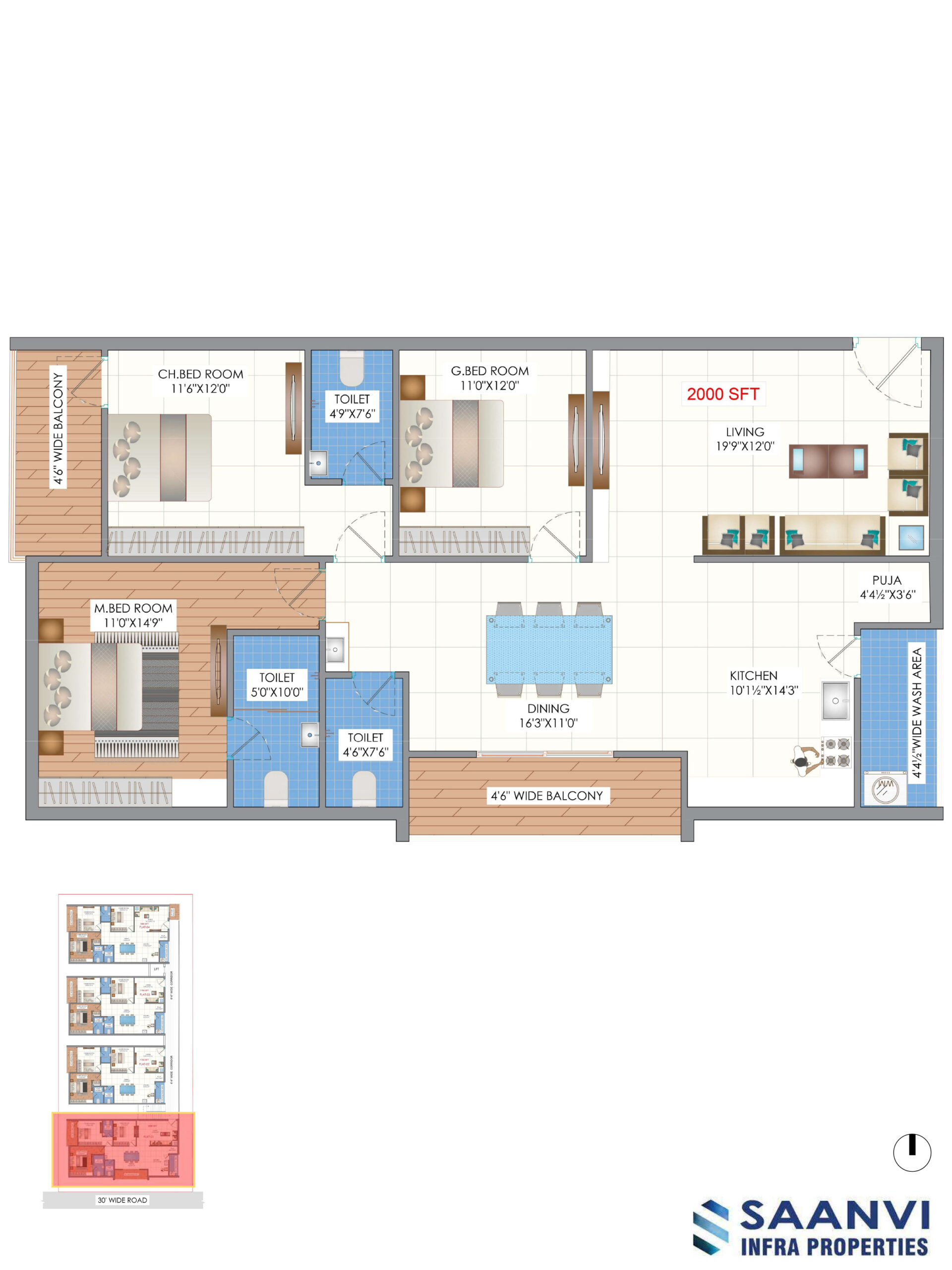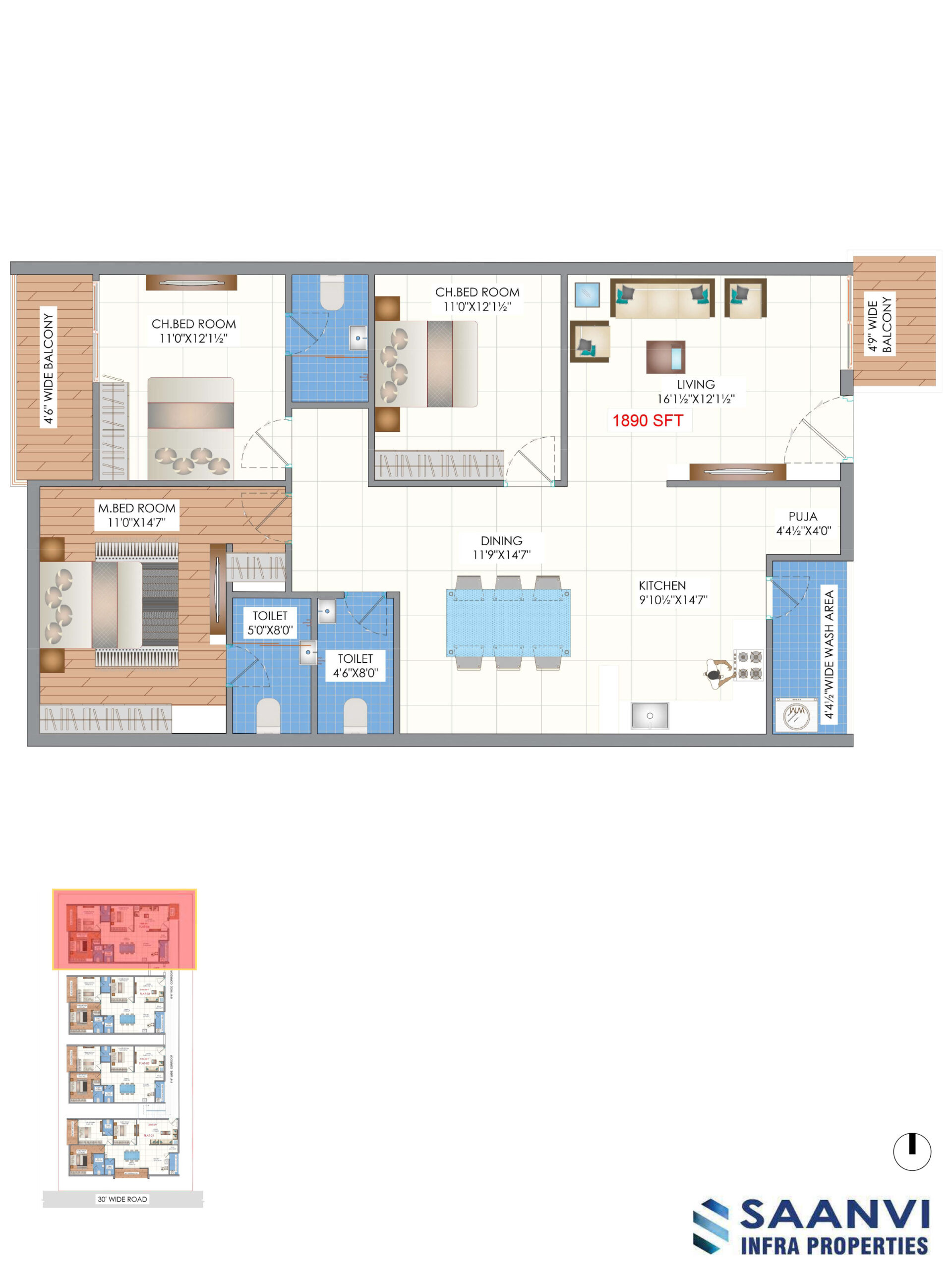 • Property Size: 2000 , 1890 ,1755 Square Feet