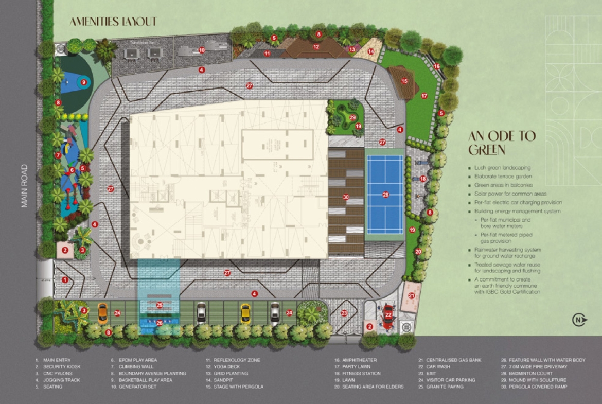 A sprawling, fully equipped clubhouse crowns Krishna’s Arena, offering world-class amenities tailored for relaxation, recreation, and social interaction.